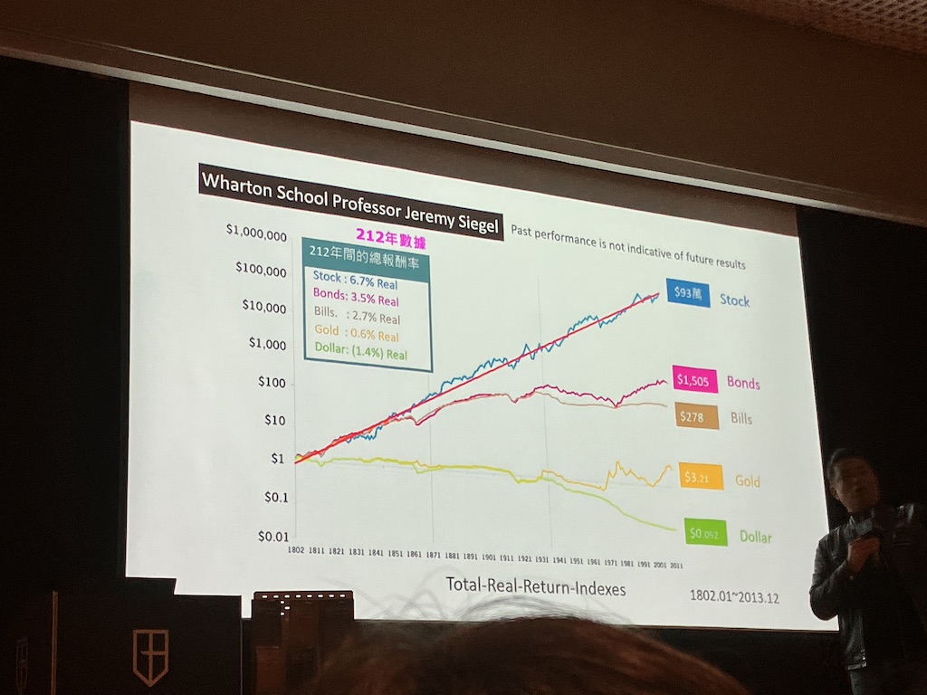 此外,華盛頓商學院的Jeremy Siegel教授,針對不同的投資工具(股票、債卷、貨幣、黃金等),自1802年至2013年的走勢,發表了「總實際收益指數」(Total-Real-Return-Indexes)研究數據,結果顯示股票長期投報率最高。直接反映了「企業經營者想要越做越大」的普遍心態。