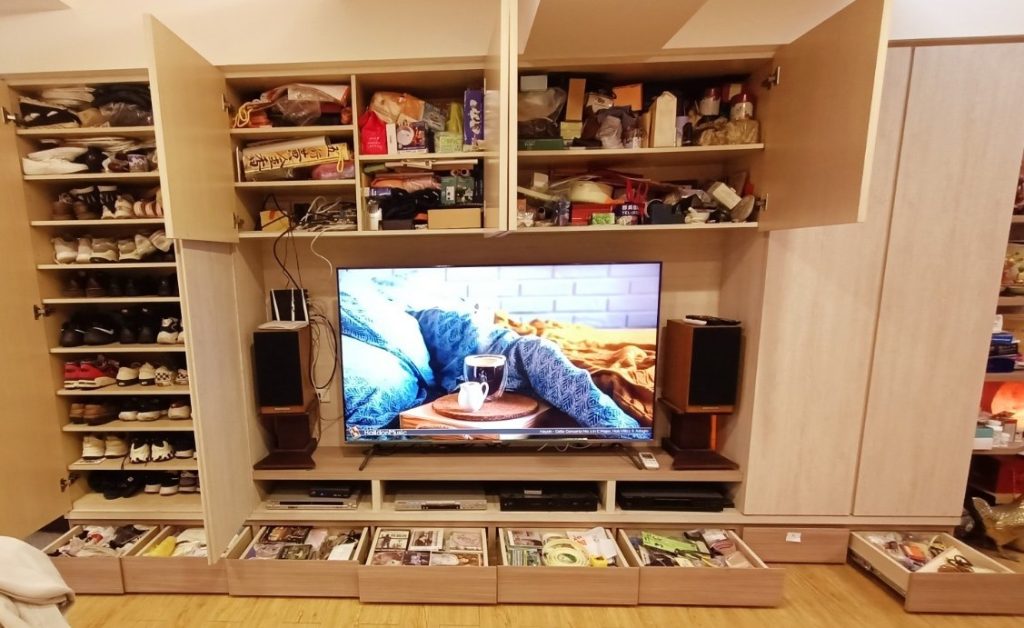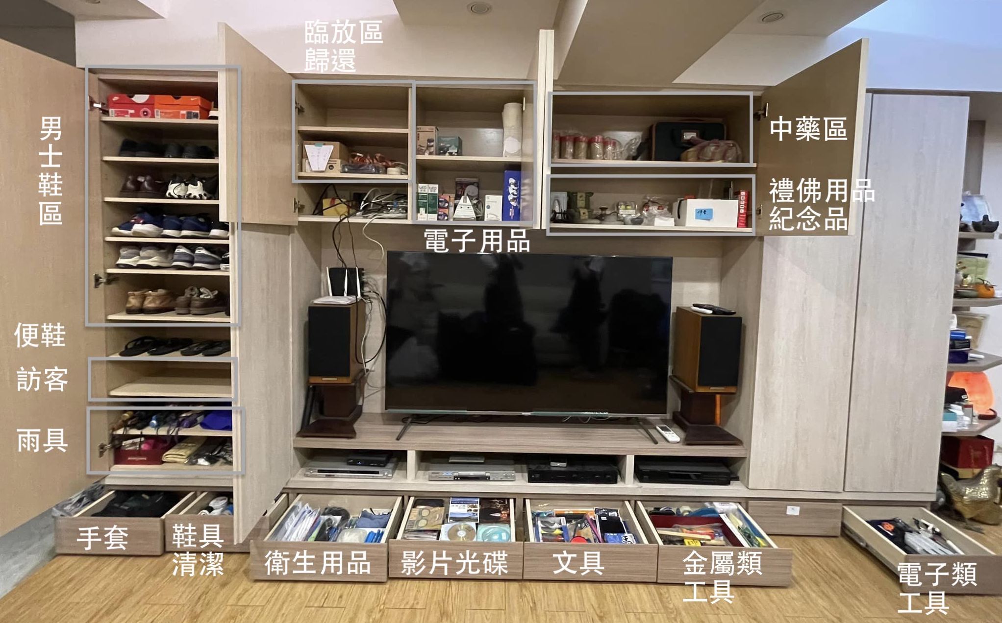這天我主要負責客廳一面收納櫃的雜物陪伴斷捨離,以及該區的動線規劃上架,並且機動性的協助其他區域。